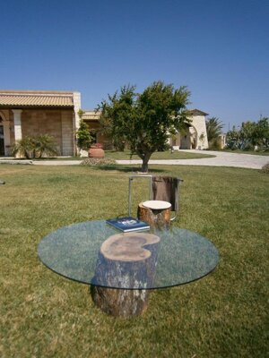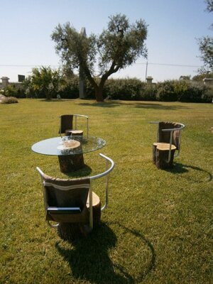 Un giardino dove coltivare il tempo. Il sogno di dominare il tempo ha ispirato il design del sistema di arredo. La seduta in legno di ulivo, pianta antica e maestosa, che grazie alle sue radici getta le basi per una realtà così radicata che neanche il tempo potrà rimuovere. Un viaggio all'insegna delle tradizioni nel Salento. L'ideale per trascorrere il tempo delle tue giornate in buona compagnia della calda accoglienza della gente ospitale del luogo, o tra un buon bicchiere di vino e un buon libro delle tradizioni popolari del Salento. Questa terra popolata di alberi d'ulivo secolari ha trasmesso ai geni dei suoi abitanti la conoscenza di come essere spettatori comodi ed indenni, radicati alle spire del tempo.