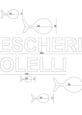 Progettazione dell'identità visiva del brand, logo, biglietti da visita, interior design della peschieria.