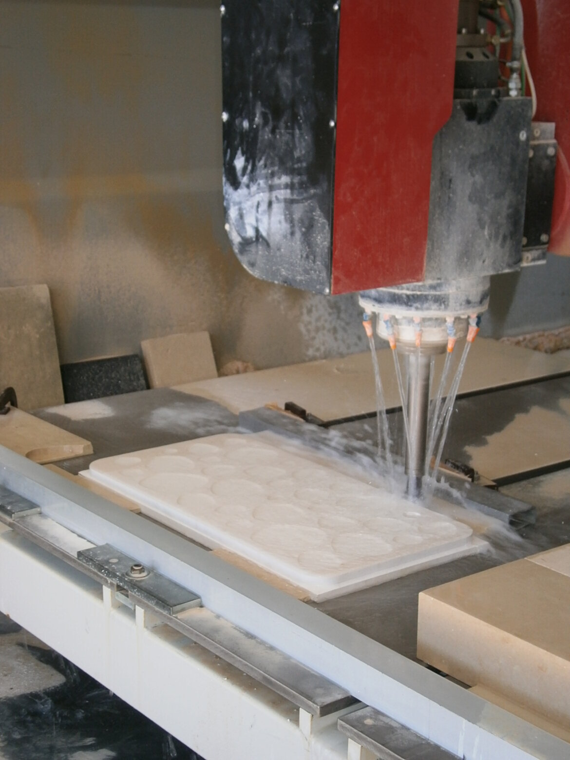 Lavorazione con macchinario cnc waterjet presso i laboratori dell'azienda PIMAR sr